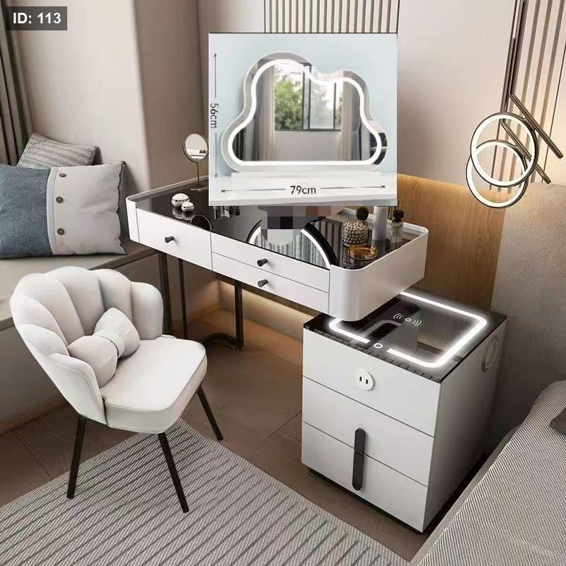 تواليت مع مراي وكومدينا وكرسي كله مع انارة ليد وسماعة بلوتوث مودرن وجديد