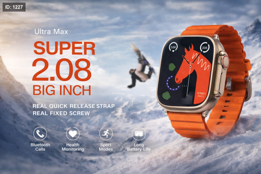 ساعة ذكية بتصميم Ultra فاخر وشاشة ضخمة 2.08 إنش تعطيك تجربة استخدام قوية وواضحة من أول نظرة.