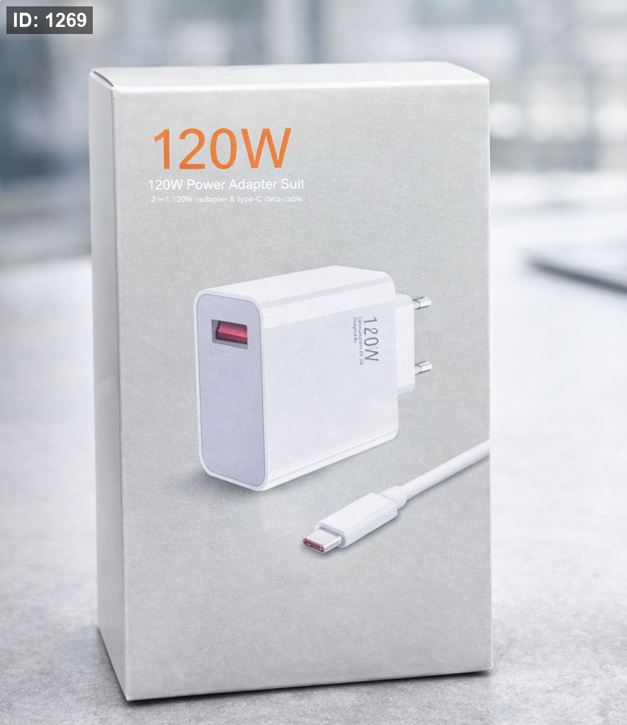 شاحن قوي للغاية بقدرة 120 واط يوفّر شحنًا فائق السرعة للأجهزة المتوافقة، مناسب للهواتف الذكية، الأجهزة اللوحية، وبعض أجهزة اللابتوب، مع تصميم أنيق وكابل مرفق لراحة أكبر.