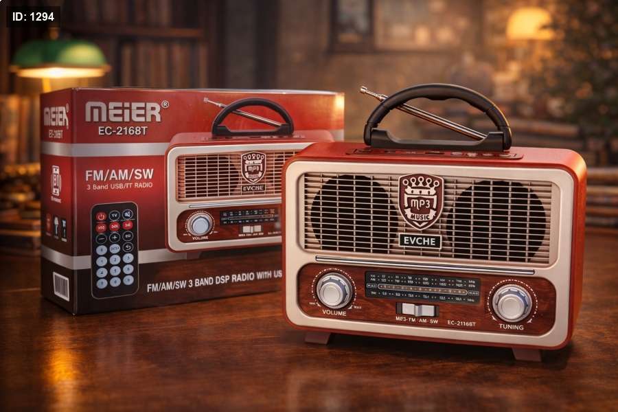 استمتع بتجربة استماع مميزة مع راديو EVCHE EC-2168T بتصميم ريترو أنيق يعيدك لأجواء الزمن الجميل، مع أداء عصري يلبي احتياجاتك اليومية. يتميز بجودة تصنيع عالية، صوت قوي وواضح، وسهولة استخدام تناسب البيت، المكتب أو الرحلات.