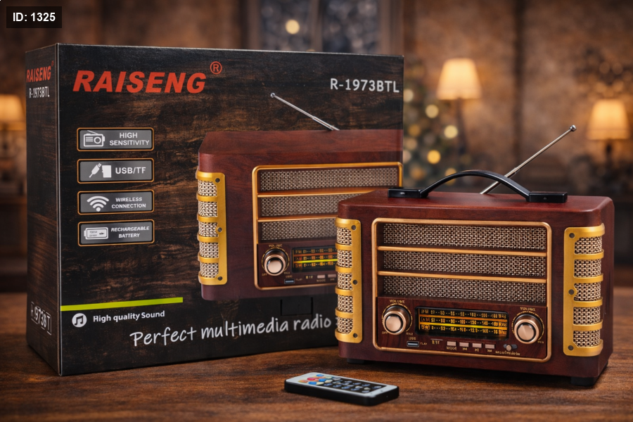 راديو Raiseng R-1973BTL بتصميم كلاسيكي أنيق، يجمع بين الشكل التراثي والتقنيات الحديثة. يدعم الراديو FM/AM مع تشغيل USB وTF، واتصال لاسلكي لتشغيل الموسيقى بكل سهولة، وبطارية قابلة للشحن تمنحك استخدامًا عمليًا في أي مكان. صوت قوي وواضح لعشّاق الذوق الكلاسيكي.