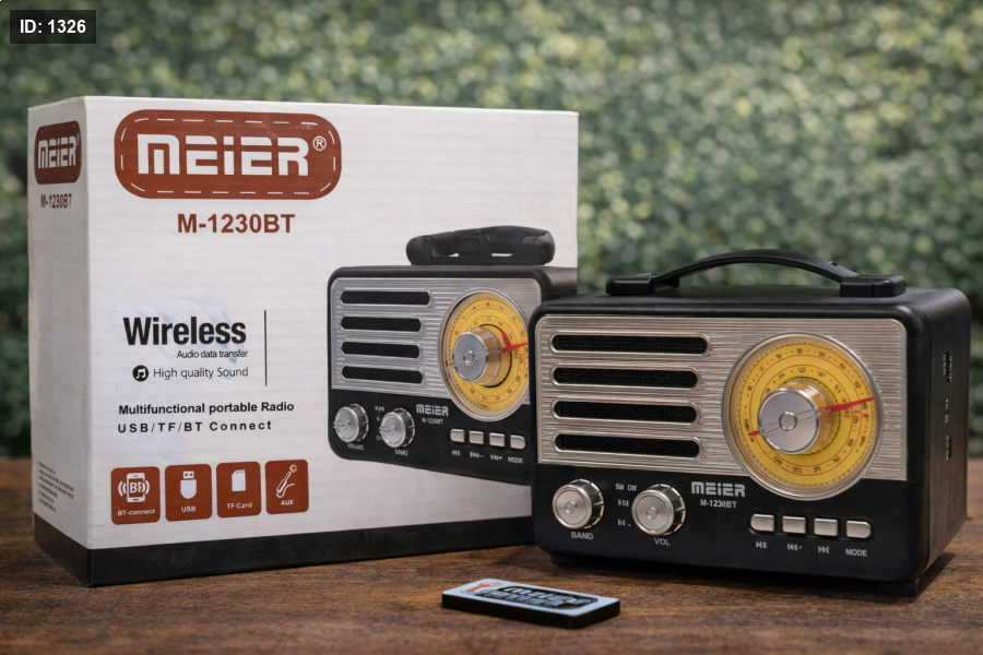 راديو Meier M-1230BT بتصميم كلاسيكي أنيق، يجمع بين الشكل التراثي والتقنيات الحديثة. يدعم البلوتوث لتشغيل الموسيقى لاسلكيًا، مع منافذ USB وTF وAUX، وجودة صوت واضحة وقوية. خفيف وسهل الحمل، مناسب للبيت، الرحلات، أو الاستخدام اليومي.