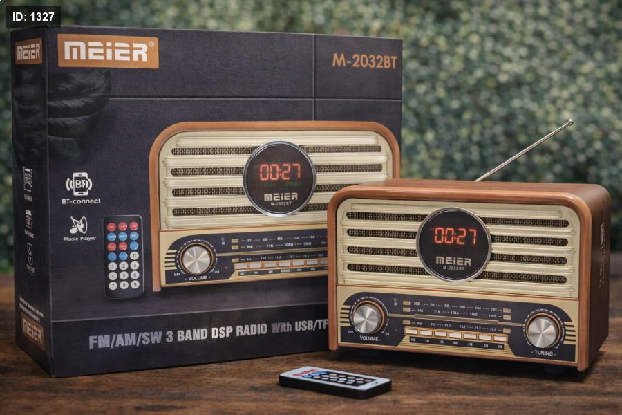 راديو Meier M-2032BT بتصميم كلاسيكي أنيق يجمع بين الشكل التراثي والتقنيات الحديثة. يدعم Bluetooth، USB وTF Card مع راديو FM/AM/SW وصوت قوي وواضح، مثالي للبيت، المكتب أو الرحلات.