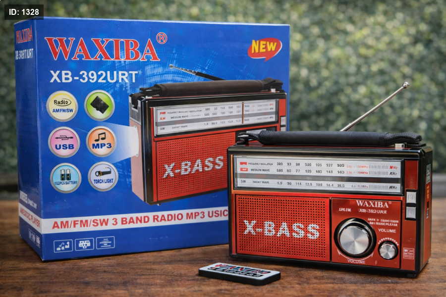 راديو WAXIBA XB-392URT عملي وقوي، يدعم AM/FM/SW مع تشغيل MP3 عبر USB، مزوّد بصوت X-BASS قوي، كشاف إضاءة، ويعمل بالبطارية — خيار مثالي للاستخدام اليومي والرحلات.