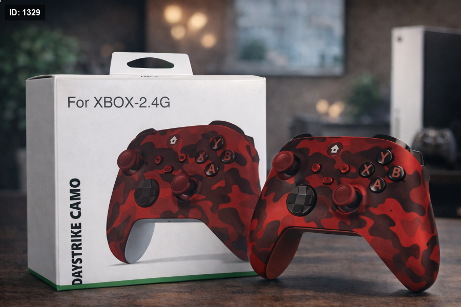 ذراع تحكم لاسلكي لأجهزة Xbox بتردد 2.4G، تصميم مريح بنقشة عسكرية جذابة، استجابة سريعة وتحكم دقيق لتجربة لعب ممتعة لساعات طويلة بدون انقطاع.