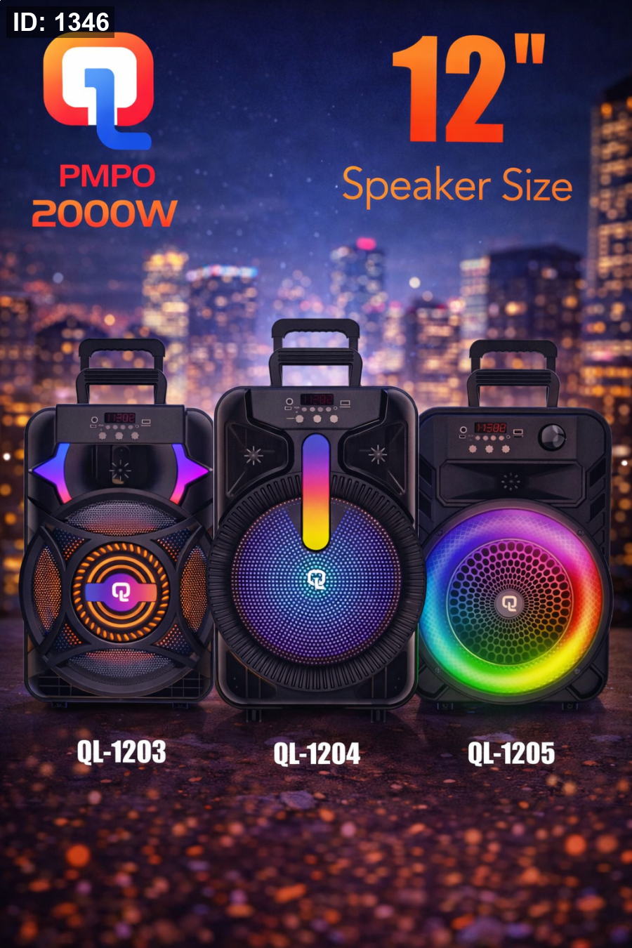 سماعة حفلات قوية بحجم 12 إنش، تعطيك صوت عالي وباس عميق يملأ المكان. مزودة بإضاءة RGB جذابة، اتصال بلوتوث، مداخل USB وAUX، ودعم كرت ذاكرة. مثالية للحفلات، المناسبات، والاستخدام الخارجي مع تصميم متين وسهل الحمل