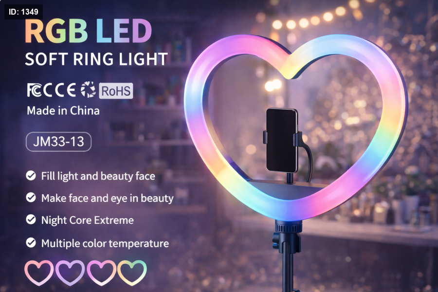 إضاءة RGB LED Soft Ring Light بتصميم عصري وجذاب، تمنحك إضاءة ناعمة ومتوازنة للوجه مع ألوان متعددة تضيف لمسة احترافية لتصويرك. مثالية للتصوير، البث المباشر، المكياج وصناعة المحتوى، مع حاملة موبايل واحدة ثابتة وسهلة الاستخدام لنتائج واضحة ومبهرة