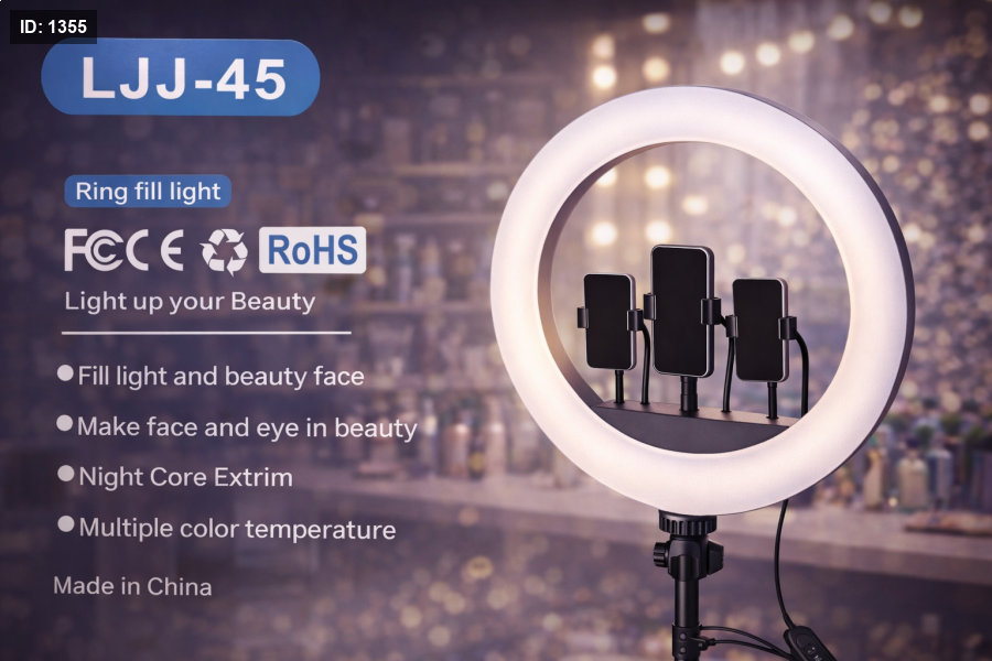 رينغ لايت LED احترافي يمنحك إضاءة ناعمة ومتوازنة لتصوير مثالي في أي وقت. مثالي للبث المباشر، التصوير، المكياج وصناعة المحتوى، مع تحكم بدرجات الإضاءة وألوانها ليظهر وجهك بأفضل شكل وبجودة احترافية