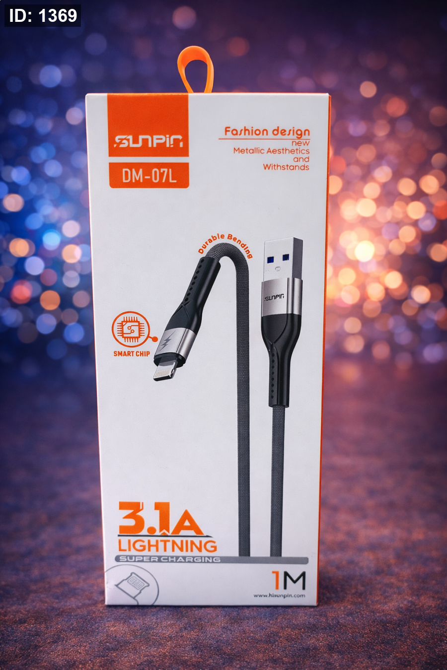 كابل Sunpir Lightning DM-07L شحن سريع بقوة 3.1A يضمن لك تعبئة أسرع وثبات في الأداء، مع تصميم متين مقاوم للانحناء وشريحة ذكية لحماية جهازك. مثالي للاستخدام اليومي ويجمع بين القوة والأناقة.