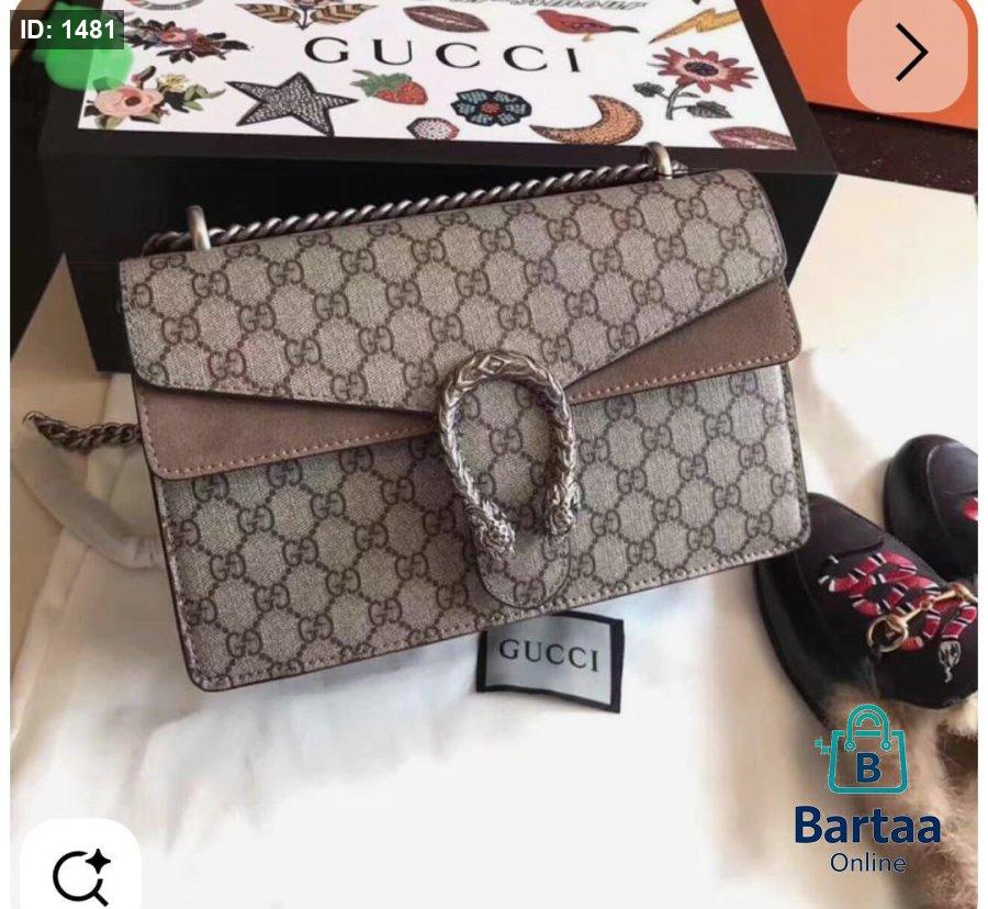 حقيبة نسائية فاخرة بتصميم أيقوني من Gucci، بنقشة GG الكلاسيكية وإغلاق معدني مميز يضفي لمسة فخامة راقية. أنيقة وعملية مع حزام كتف، مثالية للمناسبات والإطلالات اليومية الراقية.