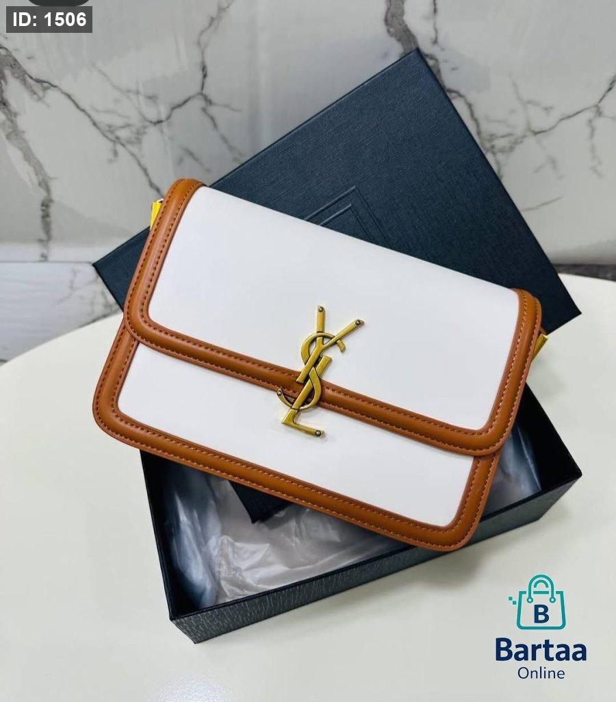حقيبة راقية من Yves Saint Laurent بتصميم أنيق يجمع بين اللون الأبيض ولمسات جلدية بنية مع شعار YSL الذهبي المميز. قطعة فاخرة وعصرية تضيف لمسة أناقة ناعمة لإطلالتك اليومية والمناسبات الخاصة.