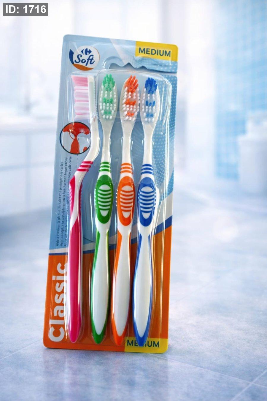 فرشاة أسنان كلاسيك – متوسطة (Classic Toothbrush Medium) عبوة 4 فراشي أسنان بألوان مختلفة
