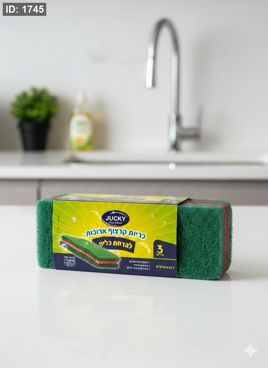 ليفة جلي خضراء لتنظيف الصحون ماركة JUCKY عبوة 3 قطع.