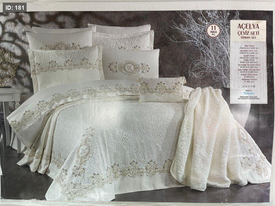 طقم شرشف عرايس 11 قطعة حرام مخمل كرنة ملانة 6 وجوه مخدات ولحاف معبأ جاهز ووجه فرشة