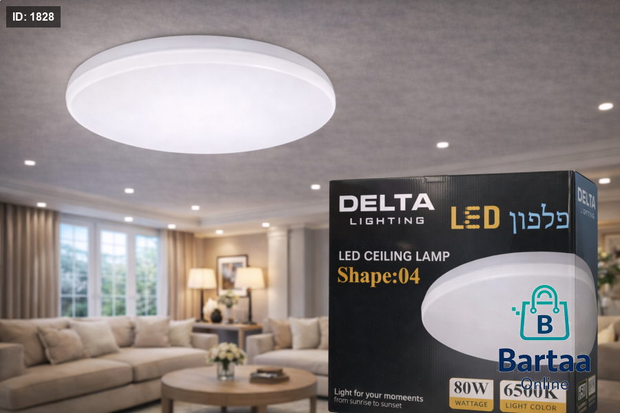 مصباح سقف DELTA LED – Shape 04 تصميم بسيط وعصري مع إضاءة قوية ومتجانسة ✨ قدرة 80W مع لون إضاءة 6500K (أبيض قوي) لإضاءة واضحة ومريحة. مناسب لغرف المعيشة، النوم والمكاتب.