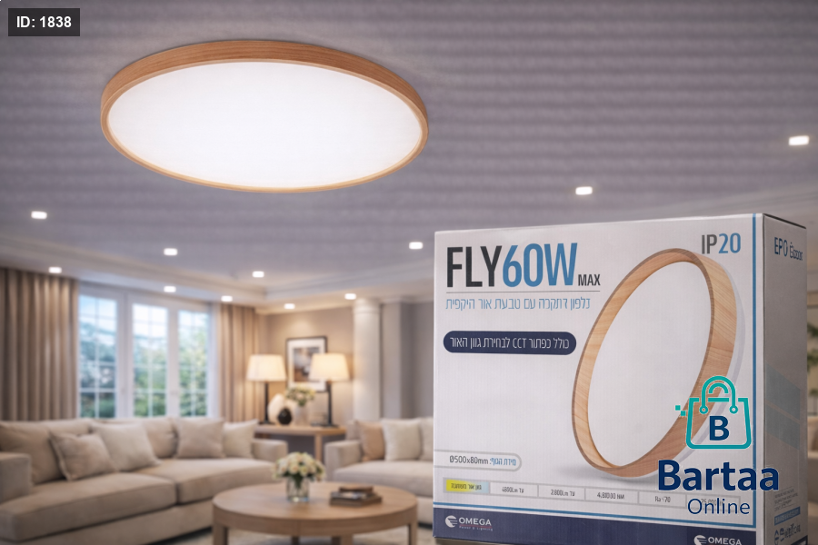 قدرة 60W بسطوع يصل إلى 4800 لومن، مع CCT قابل للتغيير (6500K / 4000K / 2700K).