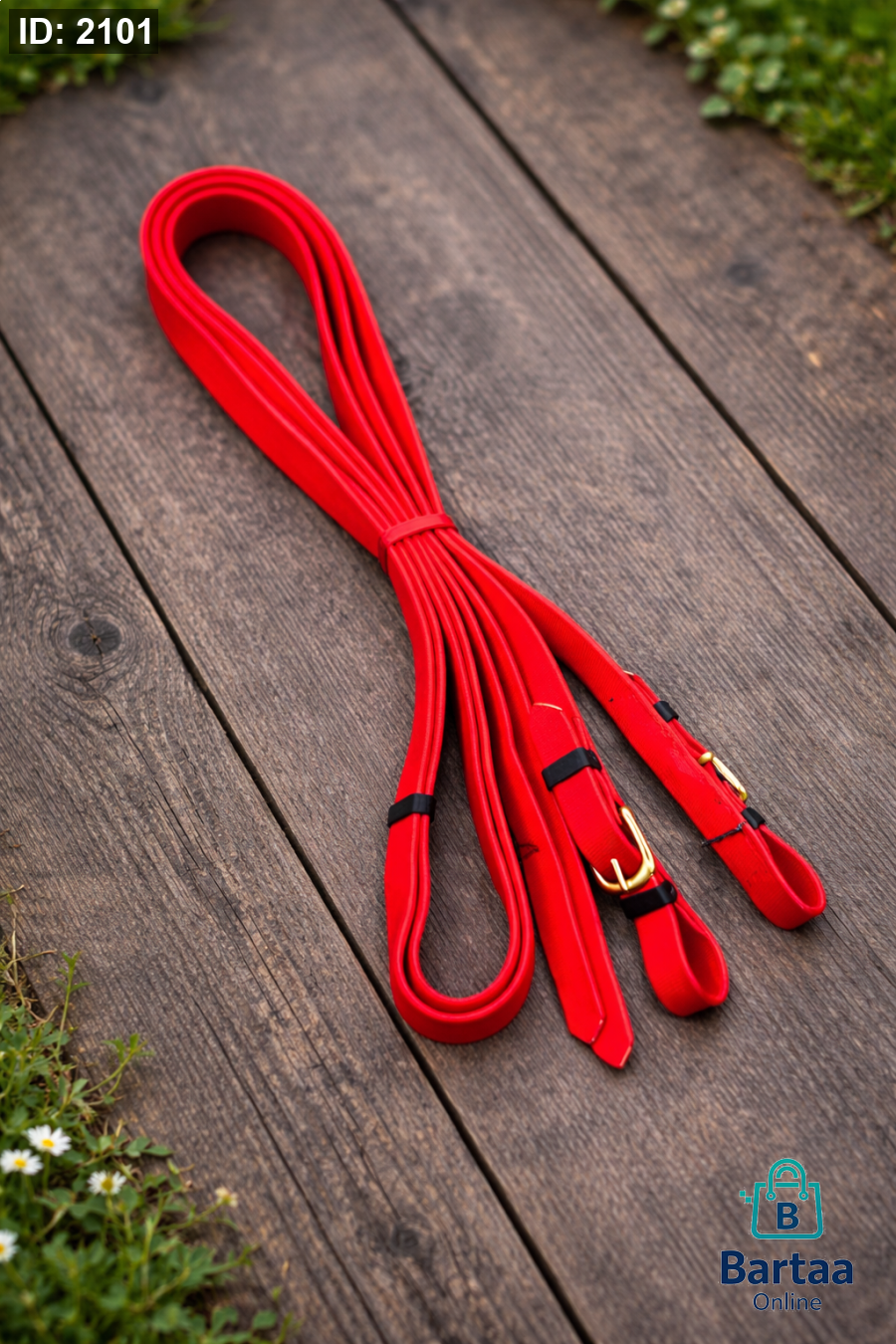 أحزمة خيول متينة بلون أحمر لافت 🔴 مصنوعة من خامات قوية تتحمّل الشدّ والاستخدام اليومي، مع حلقات ومشابك معدنية عالية الجودة لضمان الأمان والثبات. مثالية للتدريب، الربط، أو الاستخدام داخل الإسطبل 🐴💪