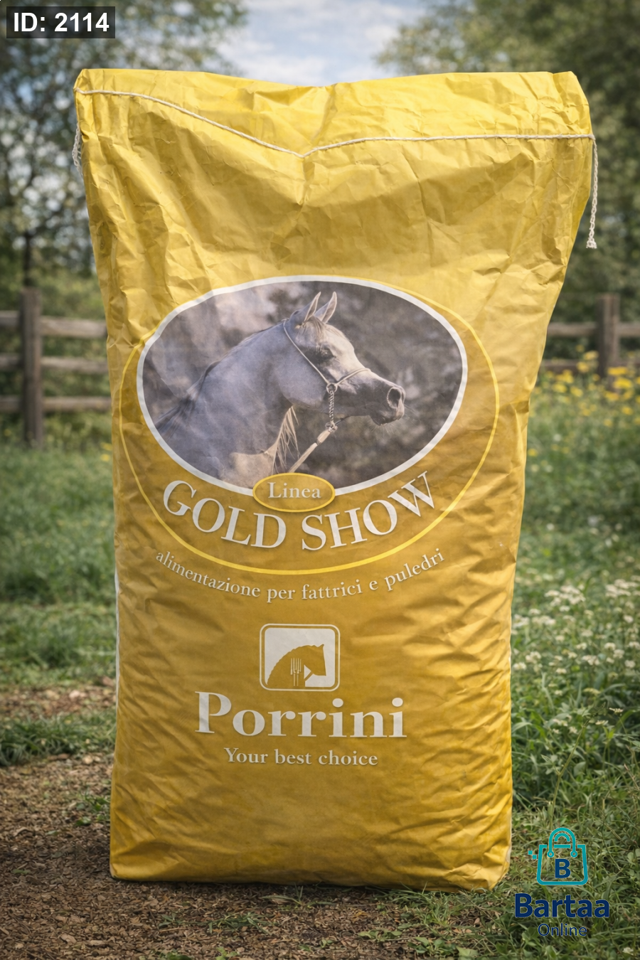 علف Gold Show – Porrini 🟡 تركيبة متوازنة لدعم الخيول في فترات العرض والتدريب، تساعد على تحسين المظهر العام، الطاقة، والحيوية ✨ مثالي للخيول الباحثة عن الأداء القوي والشكل الصحي 💪🏇