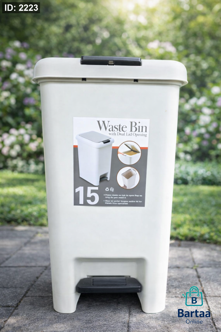 سلة مهملات عملية بسعة 15 لتر 🗑️ بغطاء مزدوج ودعسة قدم لفتح سهل بدون لمس. تصميم أنيق يناسب المطبخ، الحمام أو المكتب، متينة وسهلة التنظيف للاستخدام اليومي.