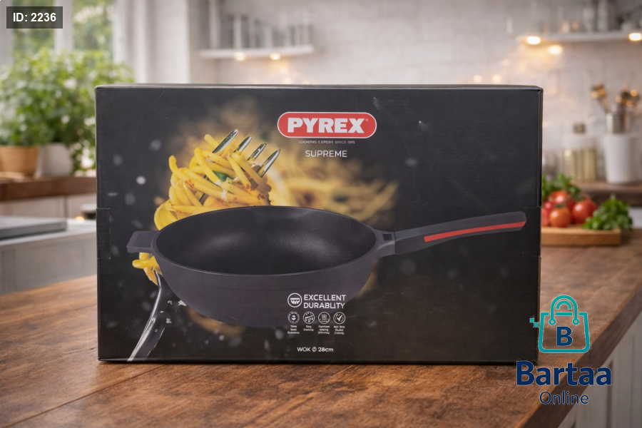 مقلاة Pyrex Supreme عالية الجودة بسطح غير لاصق ومتانة ممتازة، مثالية للطهي اليومي وتحضير أشهى الأطباق بسهولة وأناقة 🍳🔥