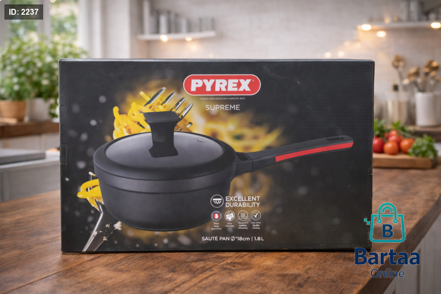 قدر Pyrex Supreme مقاس 18 سم بسعة 1.8 لتر، تصميم متين بسطح غير لاصق لطبخ أسهل وتنظيف أسرع. مثالي للصلصات والطهي اليومي مع جودة عالية تدوم طويلاً 🍲✨