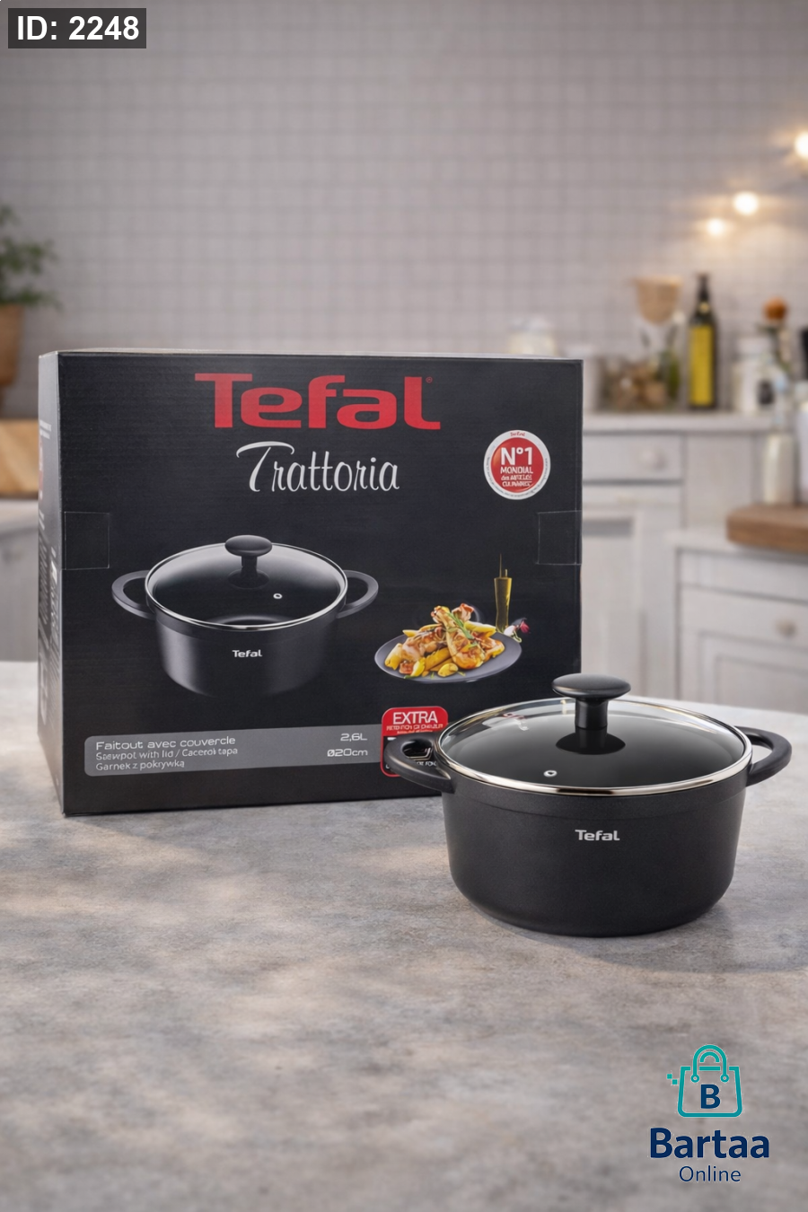 طنجرة Tefal Trattoria مع غطاء، حجم عملي 20 سم بسعة 2.6 لتر، طلاء غير لاصق عالي الجودة وتوزيع حرارة ممتاز لطبخ متوازن. اختيار مثالي للمطبخ اليومي بطعم وراحة مضمونة
