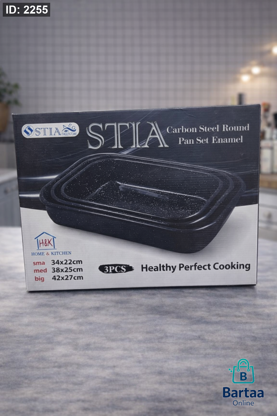 طقم صواني فرن STIA من الفولاذ الكربوني المطلي بالمينا 🔥 3 قطع بمقاسات مختلفة لطبخ صحي ومتوازن، توزيع حرارة ممتاز، سطح غير لاصق وسهل التنظيف. مثالي للفرن والتحمير اليومي 👌