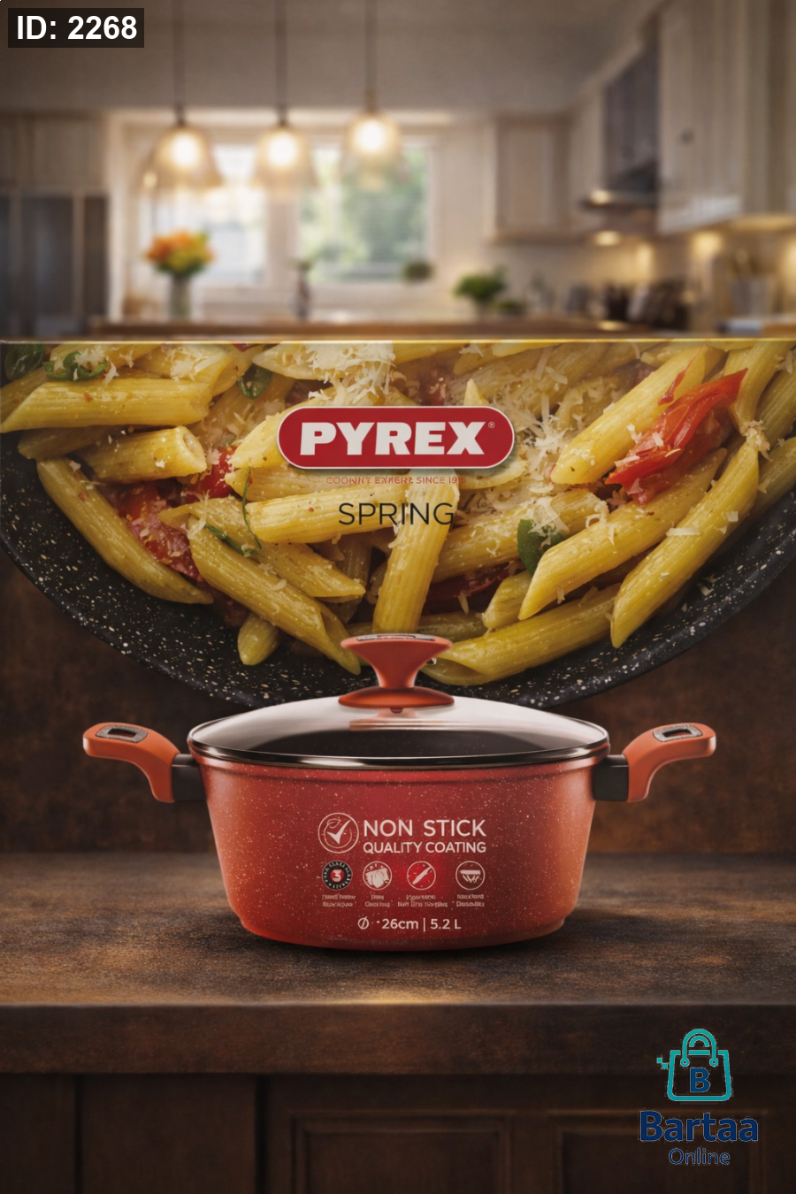 🍲 قدر PYREX Spring غير لاصق قوة وأداء عالي في الطهي مع طلاء غير لاصق ممتاز، توزيع حرارة متوازن، وغطاء زجاجي أنيق. مثالي للطبخ اليومي والعزائم 👌🔥 📏 المقاس: 26 سم | السعة: 5.2 لتر
