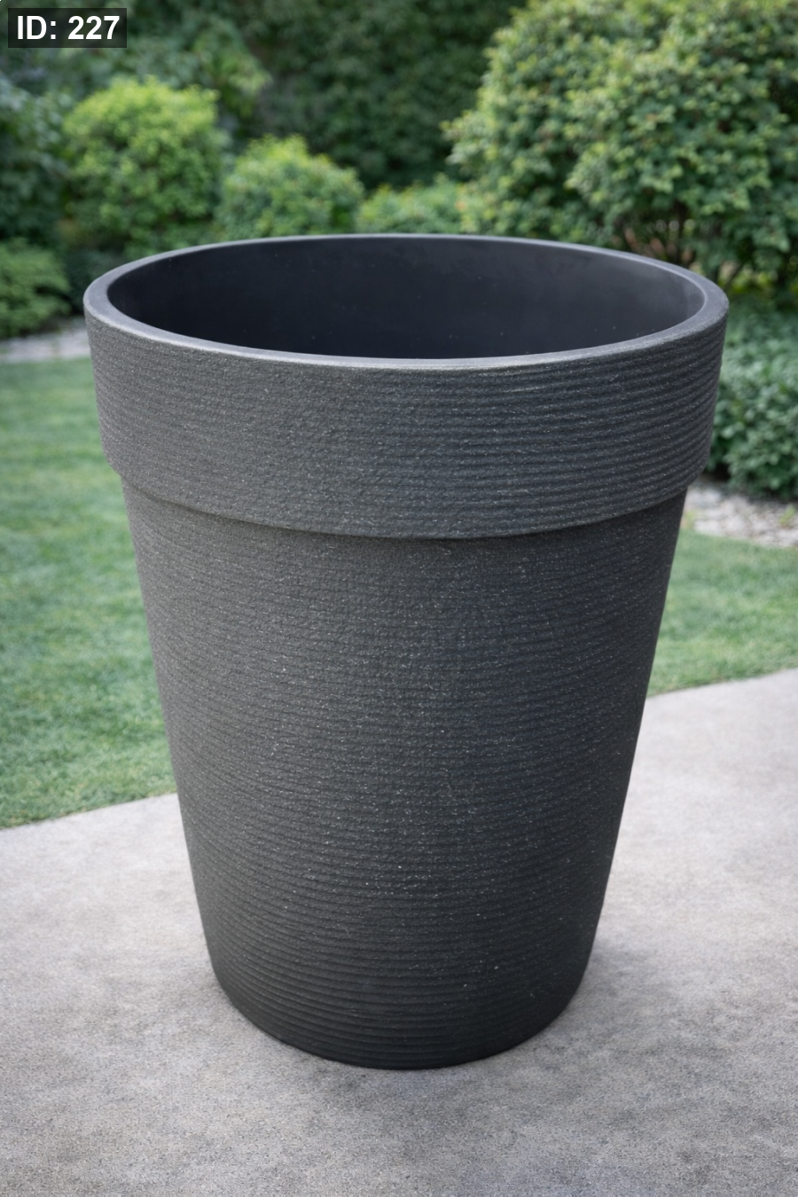 وعاء زرع من الجبس بلون أسود — يعطي شكل ديكوري مميز للنباتات الكبيرة.