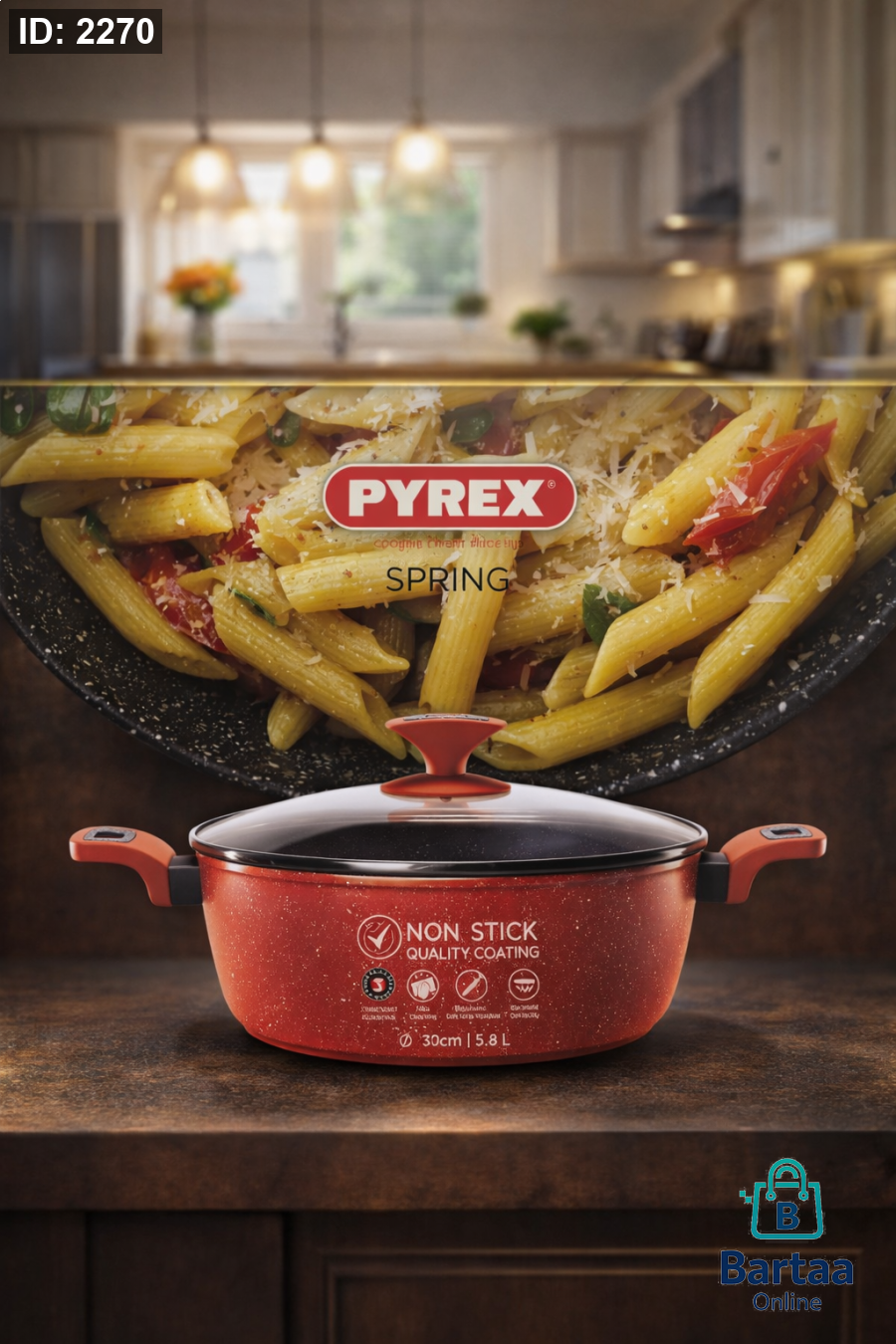 🍲 قدر PYREX Spring غير لاصق مثالي للعزائم والطبخ بكميات كبيرة، طلاء غير لاصق عالي الجودة، توزيع حرارة ممتاز، وغطاء زجاجي متين. أداء قوي وتصميم أنيق يدوم طويلاً 🔥 📏 المقاس: 30 سم | السعة: 5.8 لتر