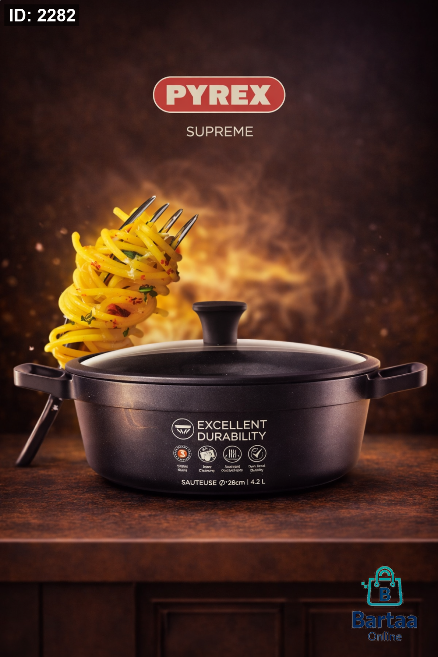طنجرة Pyrex Supreme متينة وعملية، توزيع حرارة ممتاز لطبخ مثالي 🍝