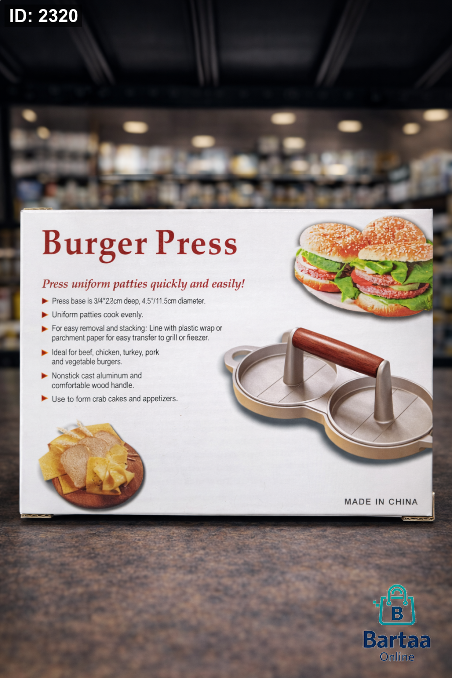 يعطيك برغر مثالي الشكل والطهي، مصنوع من الألمنيوم غير اللاصق مع مقبض مريح. مناسب للحوم والدجاج والخضار – خيار رائع لكل مطبخ 👌