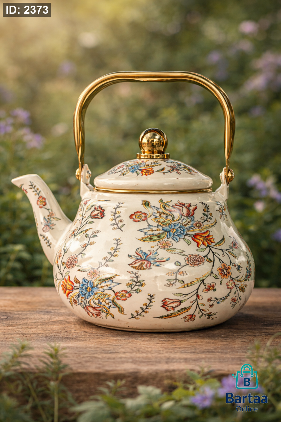 ابريق شاي بتصميم ناعم ومميز، مزخرف بنقوش جميلة مع مقبض ذهبي أنيق. عملي للاستخدام اليومي ويضيف لمسة فخامة ولمسة كلاسيك لمطبخك. 🌸✨
