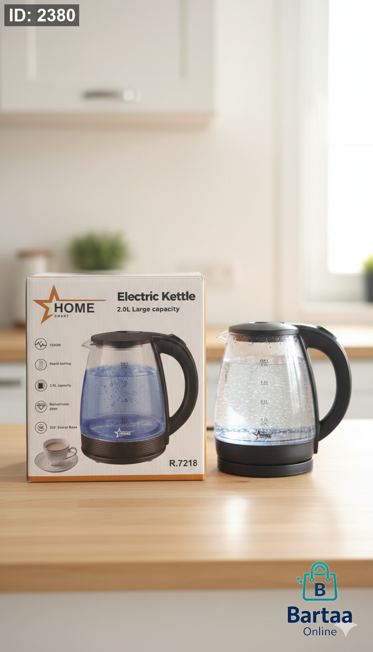 سخان كهربائي زجاجي بسعة 2 لتر ☕⚡ تسخين سريع، تصميم أنيق مع زجاج شفاف مقاوم للحرارة، مثالي للاستخدام اليومي في البيت أو المكتب.
