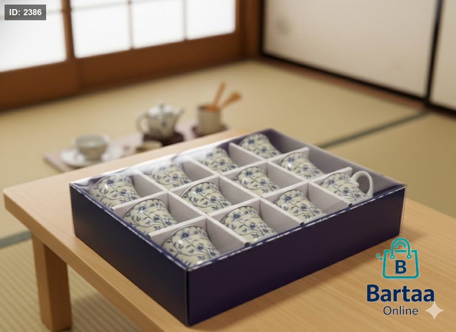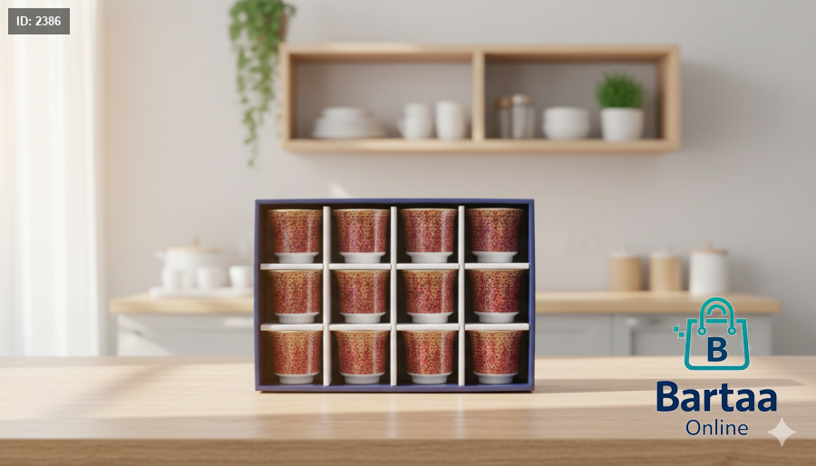 طقم فناجين قهوة عدد 12 بتصاميم فاخرة 🎨☕ نقشات أنيقة وألوان راقية داخل علبة مرتّبة، مثالي للضيافة والمناسبات ويضيف لمسة فخامة على طاولة القهوة.