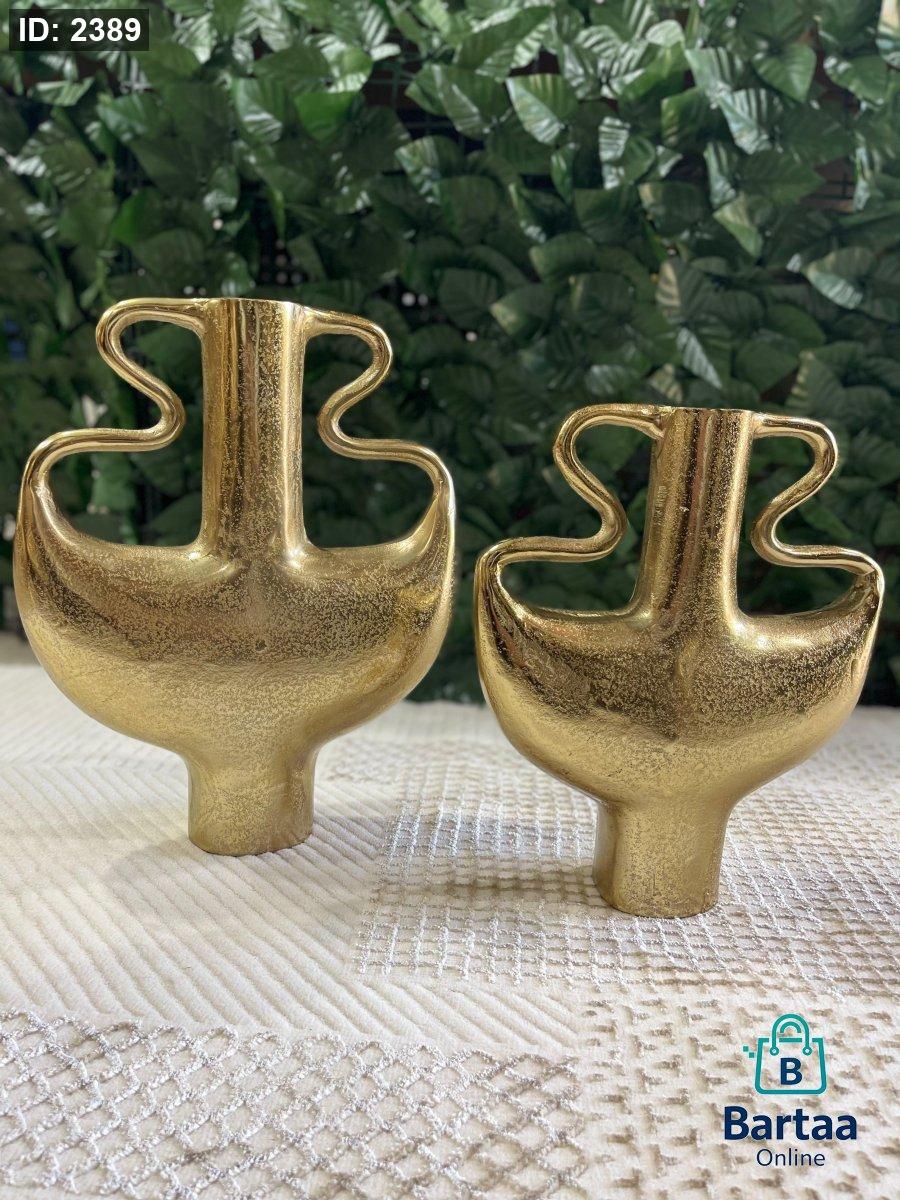 قطعتان مزهريتان نحاس اصلي ومكفول ديكور بتصميم فني عصري ولون ذهبي فاخر، شكل منحوت يلفت النظر ويضيف لمسة أناقة لأي طاولة أو زاوية في البيت. مثالية للديكور العصري والحديث، وتنسّق بسهولة مع مختلف الألوان والمساحات.