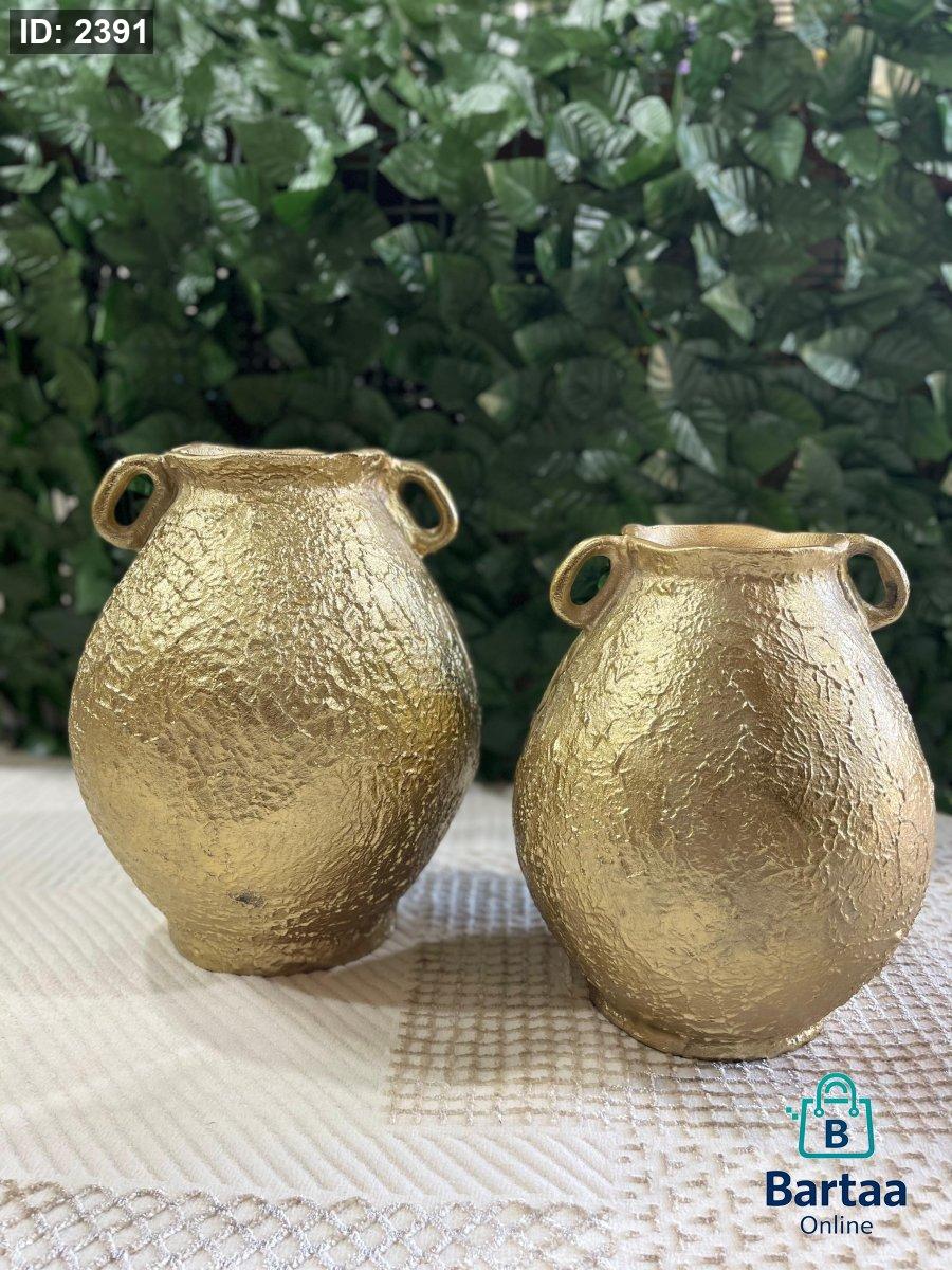 فازتان ديكور نحاس اصلي مكفول بتصميم كلاسيكي أنيق ولون ذهبي مطفي بملمس بارز وفاخر. تضيفان لمسة فخامة ودفء لأي مساحة، مناسبة للطاولات والرفوف وزوايا الصالون، ويمكن تنسيقهما مع الورد الجاف أو تركهما كقطعة ديكور مستقلة.