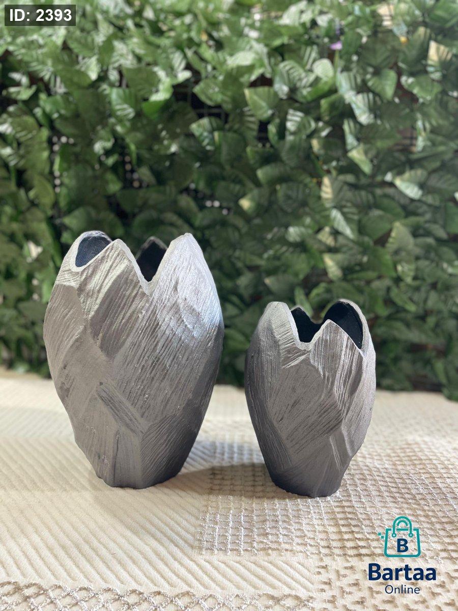 فازتان ديكور بتصميم عصري أنيق ولون رمادي مطفي بملمس فني مميز. تضيفان لمسة هادئة وراقية لأي مساحة، مثالية للديكور المودرن وتنسجمان بسهولة مع مختلف الألوان، ويمكن استخدامهما مع الورد الجاف أو كقطعة ديكور مستقلة.