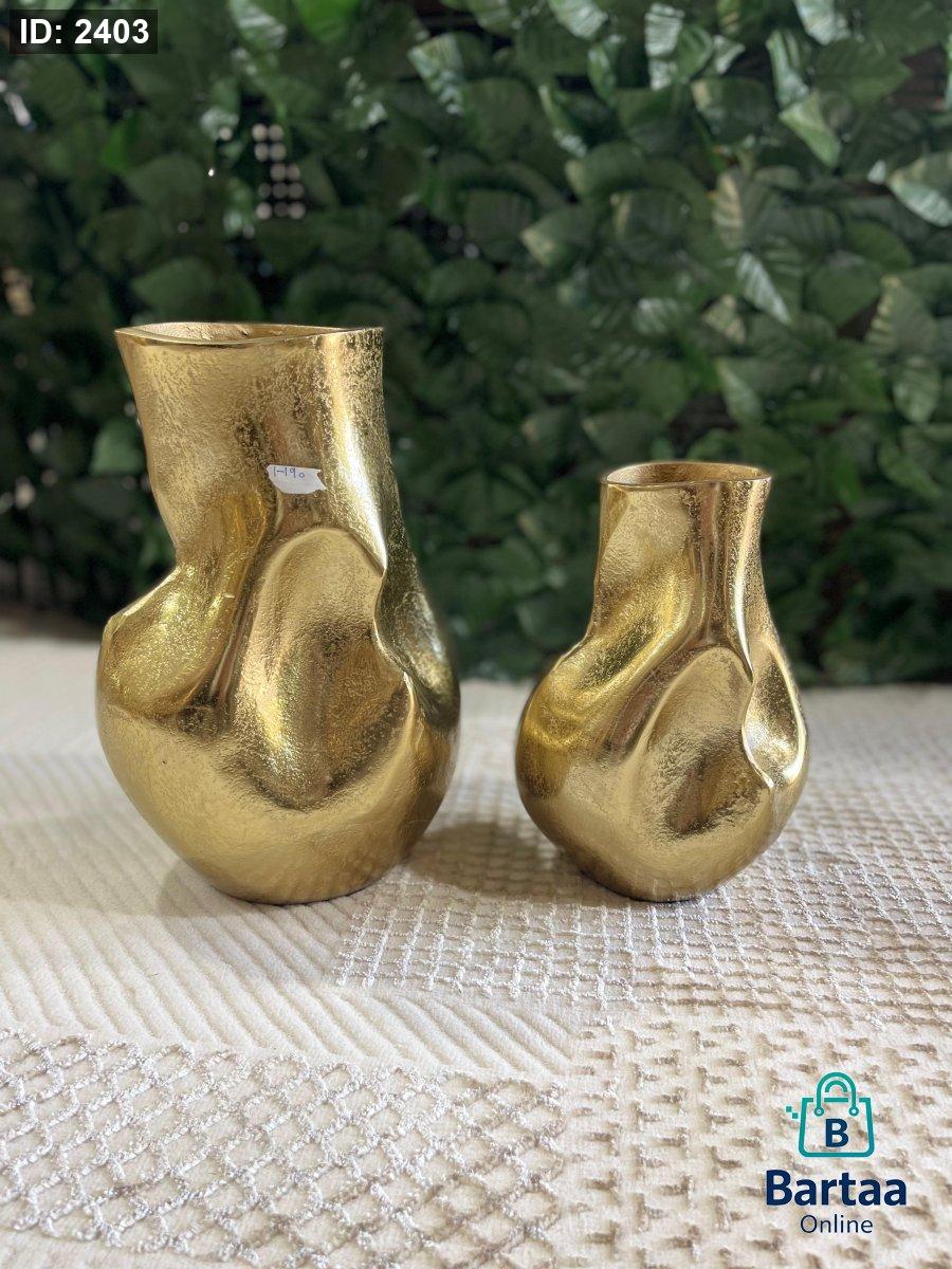 فازتان ديكور نحاس اصلي مكفول بتصميم عصري ناعم ولمسة ذهبية لامعة فاخرة. تضيفان لمسة أناقة ورقي لأي مساحة، مثاليتان للطاولات والرفوف وزوايا الصالون، وتبدوان رائعتين مع الورد الجاف أو كقطعة ديكور مستقلة تلفت الأنظار.