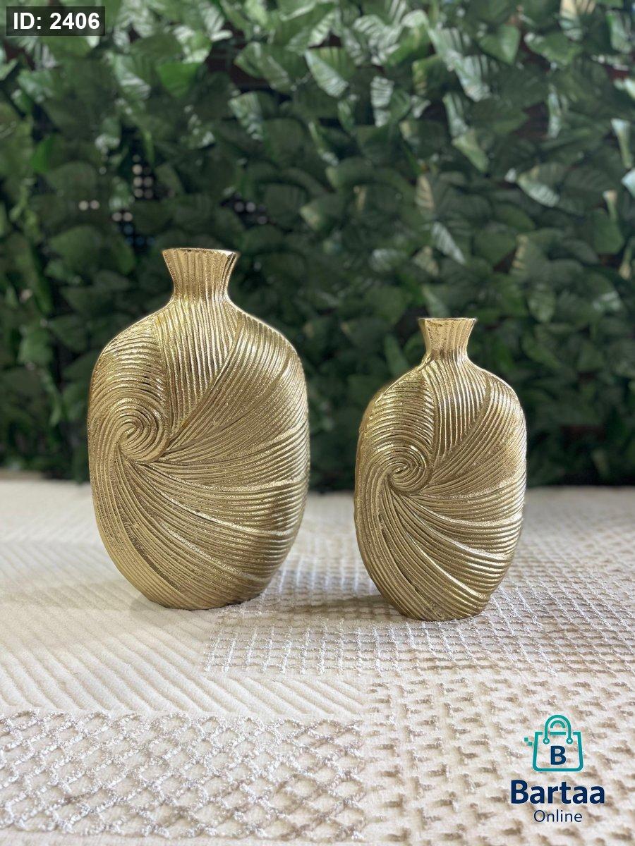 فازتان ديكور نحاس اصلي مكفول بتصميم حلزوني فاخر ولمسة ذهبية أنيقة، تضيفان إحساساً بالفخامة والرقي لأي مساحة. مثاليتان للطاولات والرفوف وزوايا الصالون، وتبدوان رائعتين مع الورد الجاف أو كقطعة ديكور فنية مستقلة تلفت الأنظار.