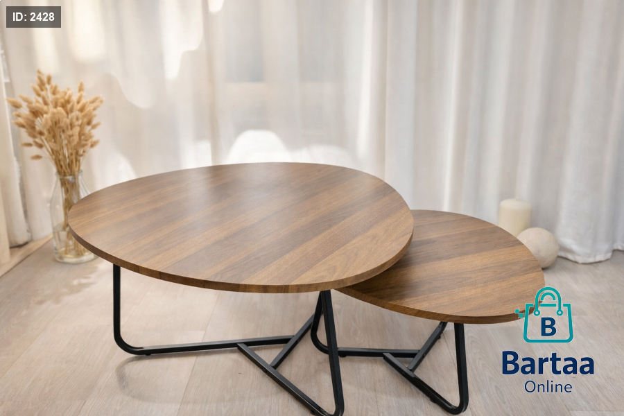 طقم طاولات بيضاوية أنيقة تصميم عصري بخشب دافئ مع أرجل معدنية ثابتة. عملي، موفّر للمساحة ويضفي لمسة أناقة على غرفة المعيشة.