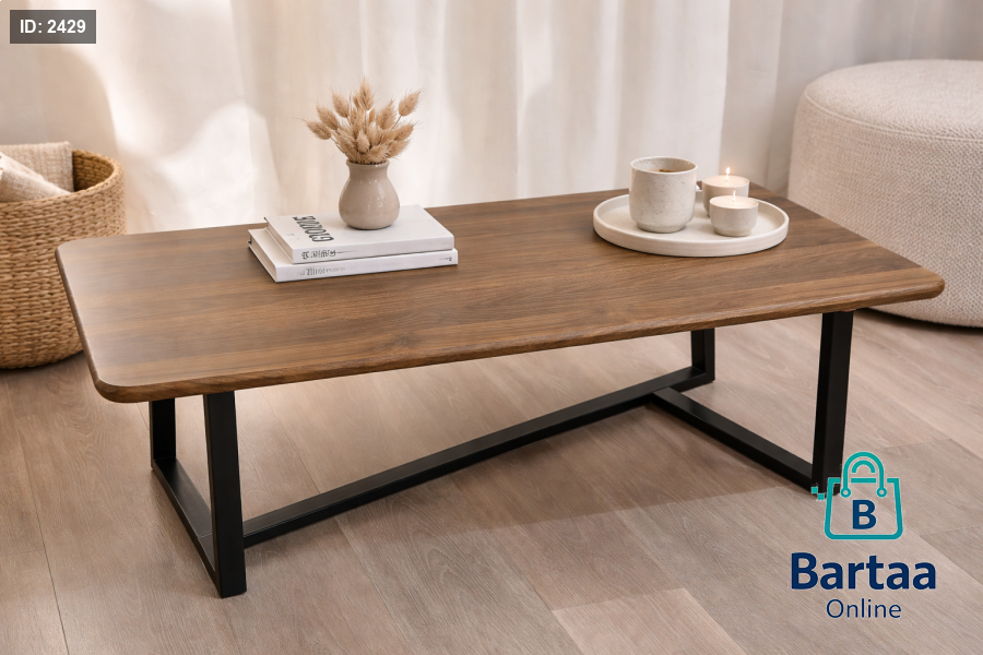 طاولة خشبية بتصميم عصري سطح خشبي أنيق مع قاعدة معدنية ثابتة، مثالية لغرفة المعيشة وتجمع بين العملية والفخامة بلمسة بسيطة وعصرية.