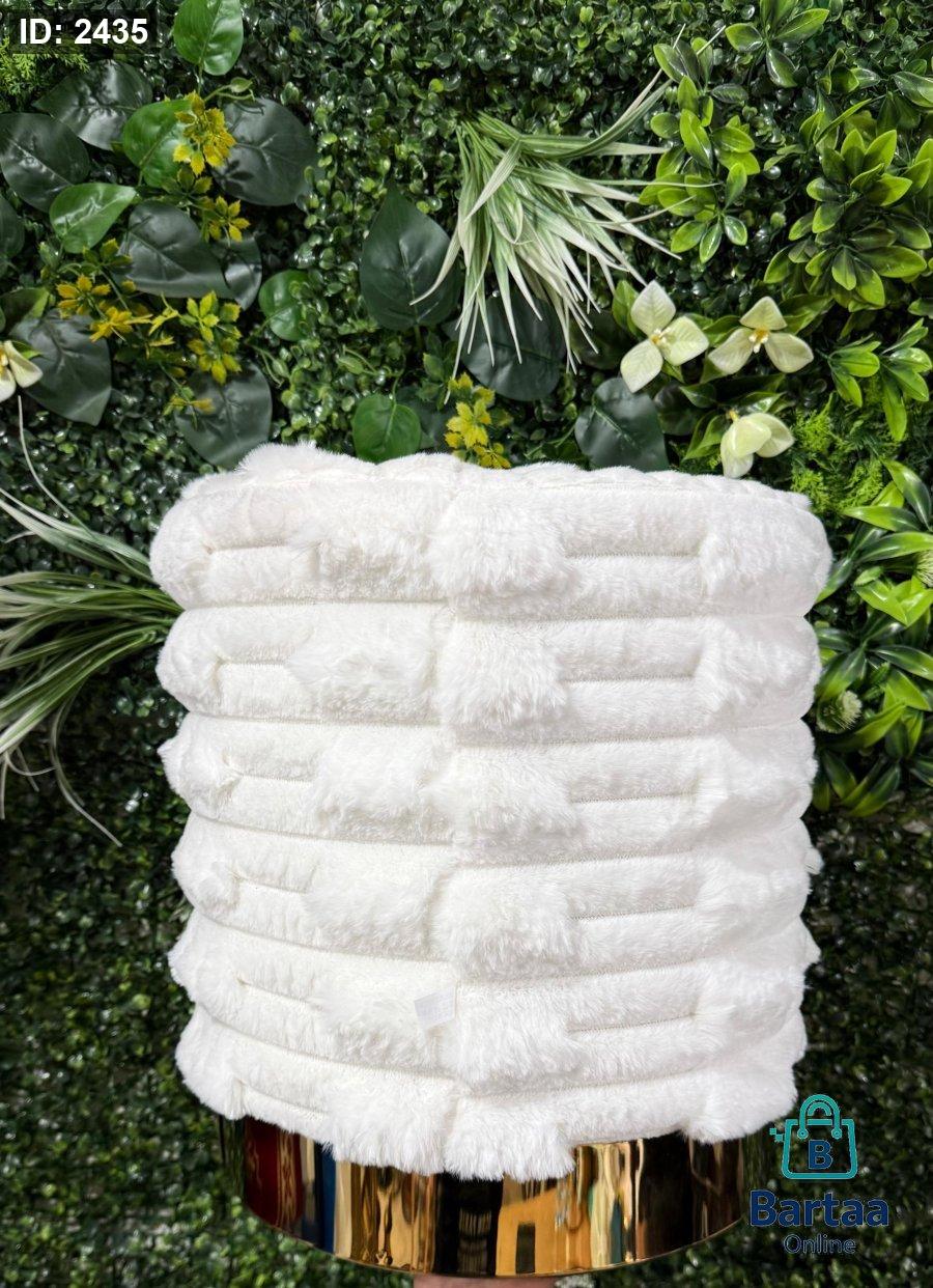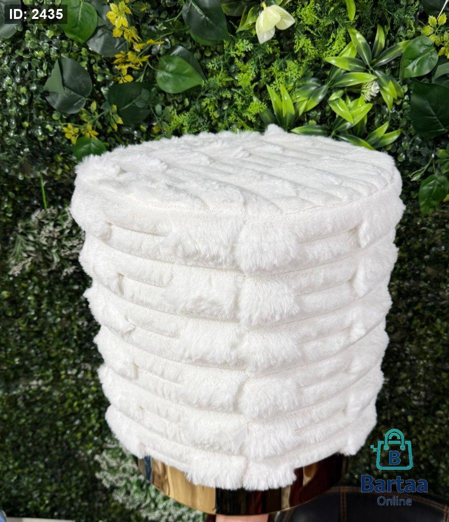 بوف فاخر بملمس فرو الارنب ناعم تصميم أنيق ومريح بلون أبيض راقٍ، يضفي لمسة فخامة ودفء على أي مساحة، مثالي لغرفة المعيشة أو غرفة النوم.