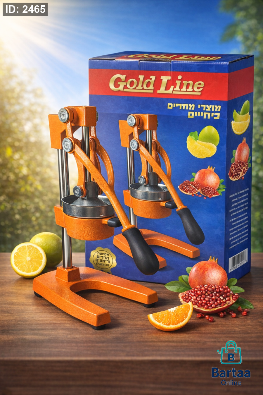 عصّارة يدوية Gold Line 🍊🍎 عصر قوي وسريع بدون كهرباء، هيكل متين، تحكم سهل، واستخلاص عصير بأعلى كمية. مثالية للبرتقال، الرمان، وكل الحمضيات 🧃💪