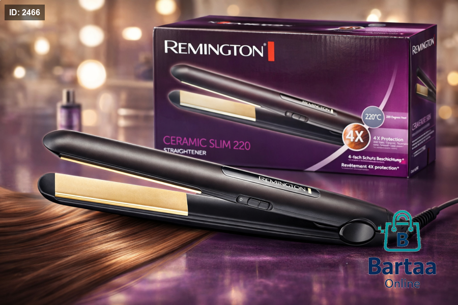 مملّس شعر Remington Ceramic Slim 220 ✨💇‍♀️ نعومة مثالية بفضل ألواح السيراميك وحماية 4X، يسخن حتى 220° لنتائج سريعة ولمعان يدوم. تصفيف أنيق وسهل بكل يوم 💜👌