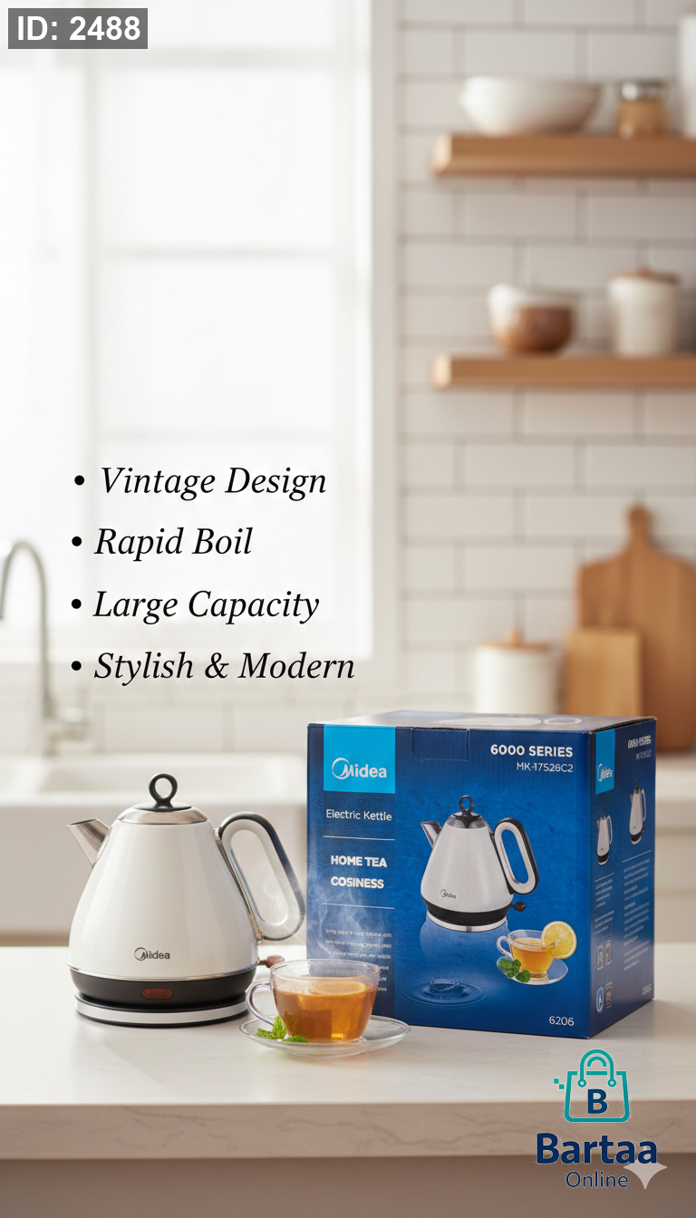 غلاية كهربائية Midea 6000 Series ☕🔥 تصميم Vintage أنيق مع غليان سريع وسعة كبيرة تناسب كل بيت 👌 عملية، عصرية، وتضيف لمسة جمال لمطبخك كل يوم ✨