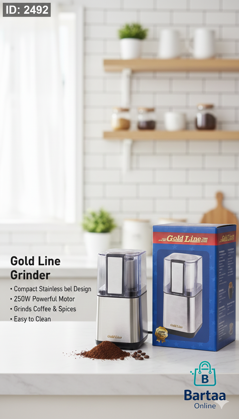 مطحنة Gold Line 250W ☕⚡ تصميم ستانلس ستيل أنيق وحجم مدمج يناسب أي مطبخ 👌 محرك قوي لطحن القهوة والبهارات بسهولة، وتنظيف سريع بدون تعب ✨ طعم طازج كل يوم 💛🔥