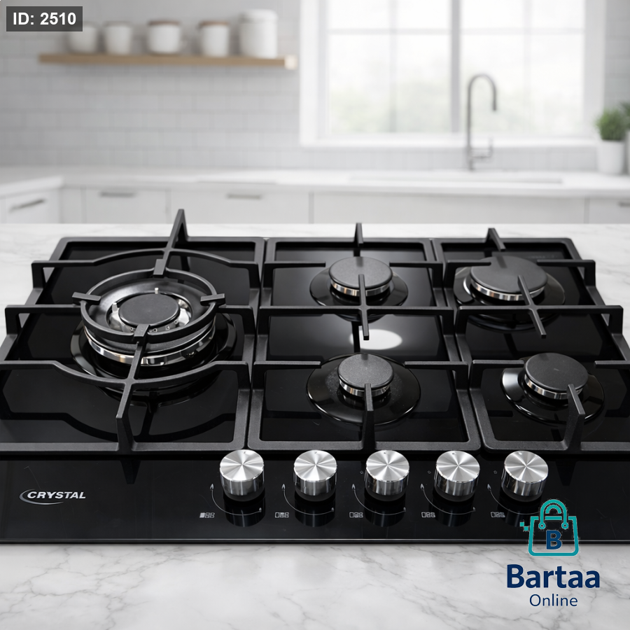 غاز زجاج CRYSTAL 🔥🖤 تصميم أسود فاخر مع 5 شعلات قوية لأداء احترافي في كل طبخة 👌 حوامل حديد متينة ومقابض ستانلس أنيقة… قوة، فخامة وسهولة تنظيف في جهاز واحد ✨🍳