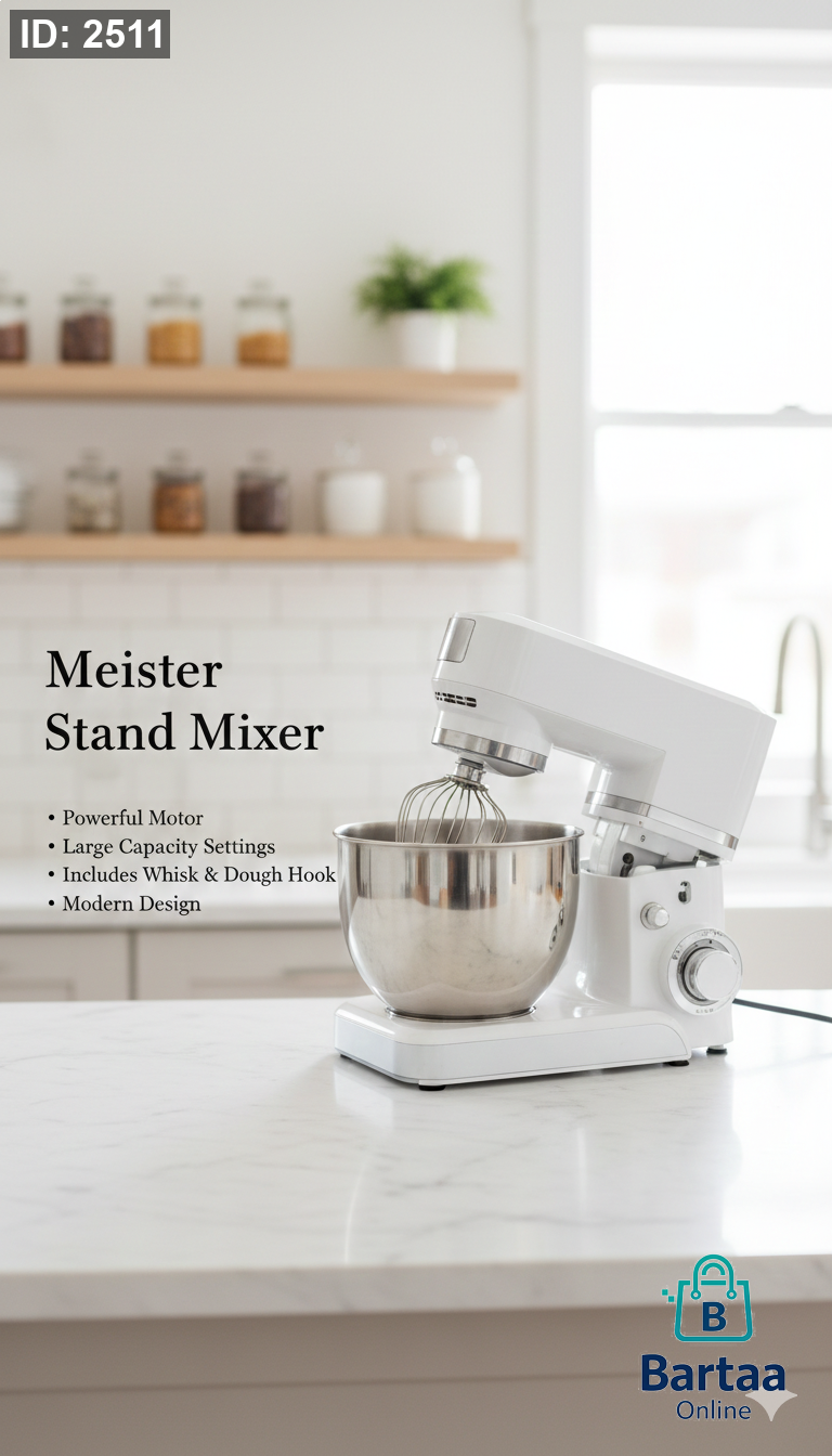 عجانة Meister Stand Mixer 🤍🥣 محرك قوي وسعة كبيرة لتحضير العجين والكيك بكل سهولة 👌 يأتي مع مضرب وخطاف عجن، تصميم عصري وأداء احترافي… مساعدك المثالي لكل وصفة 🍰✨
