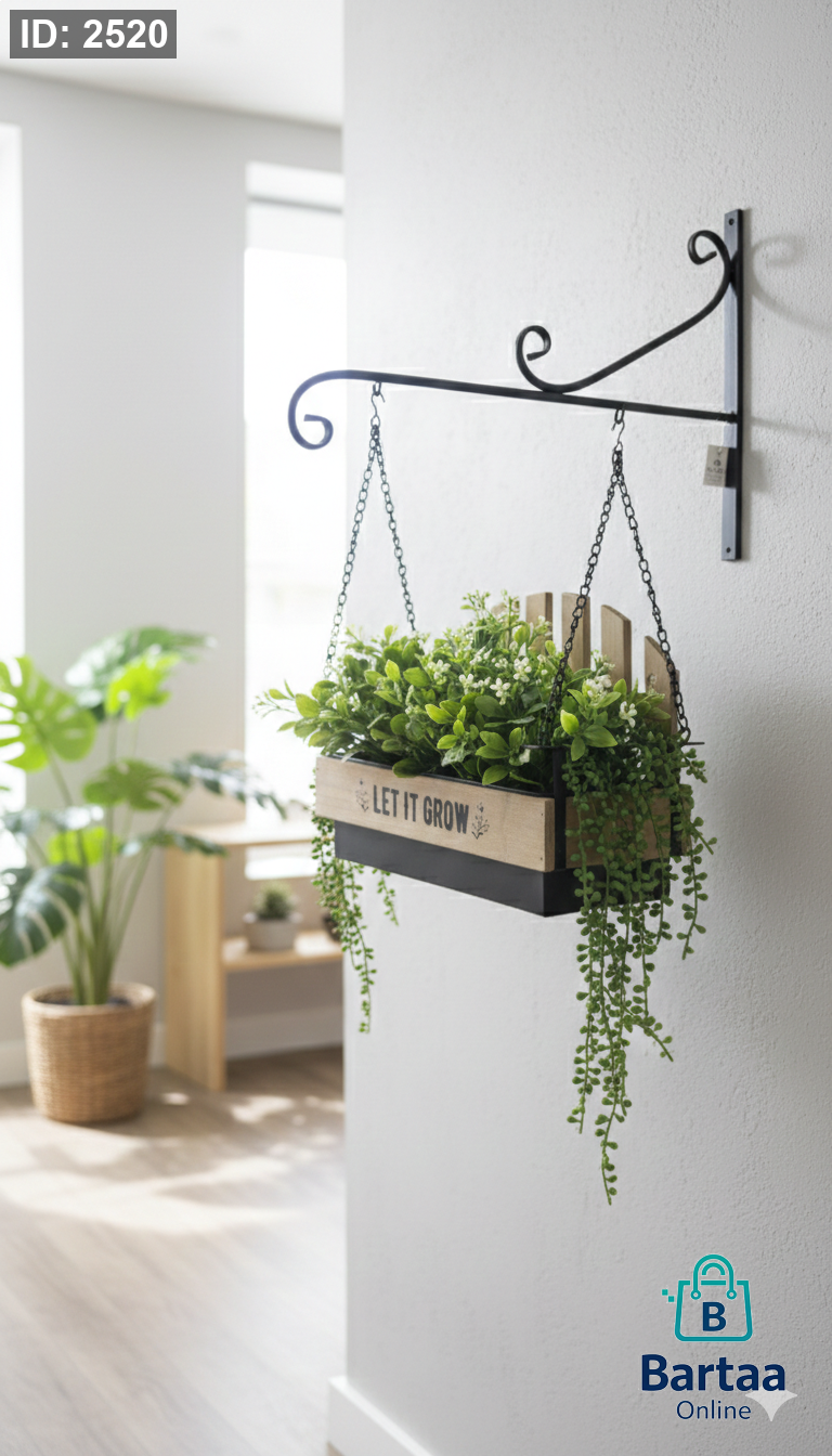 حامل زهور جداري معدني مع صندوق خشبي 🌿 تصميم عصري يضيف لمسة طبيعة وأناقة لأي مساحة ✨